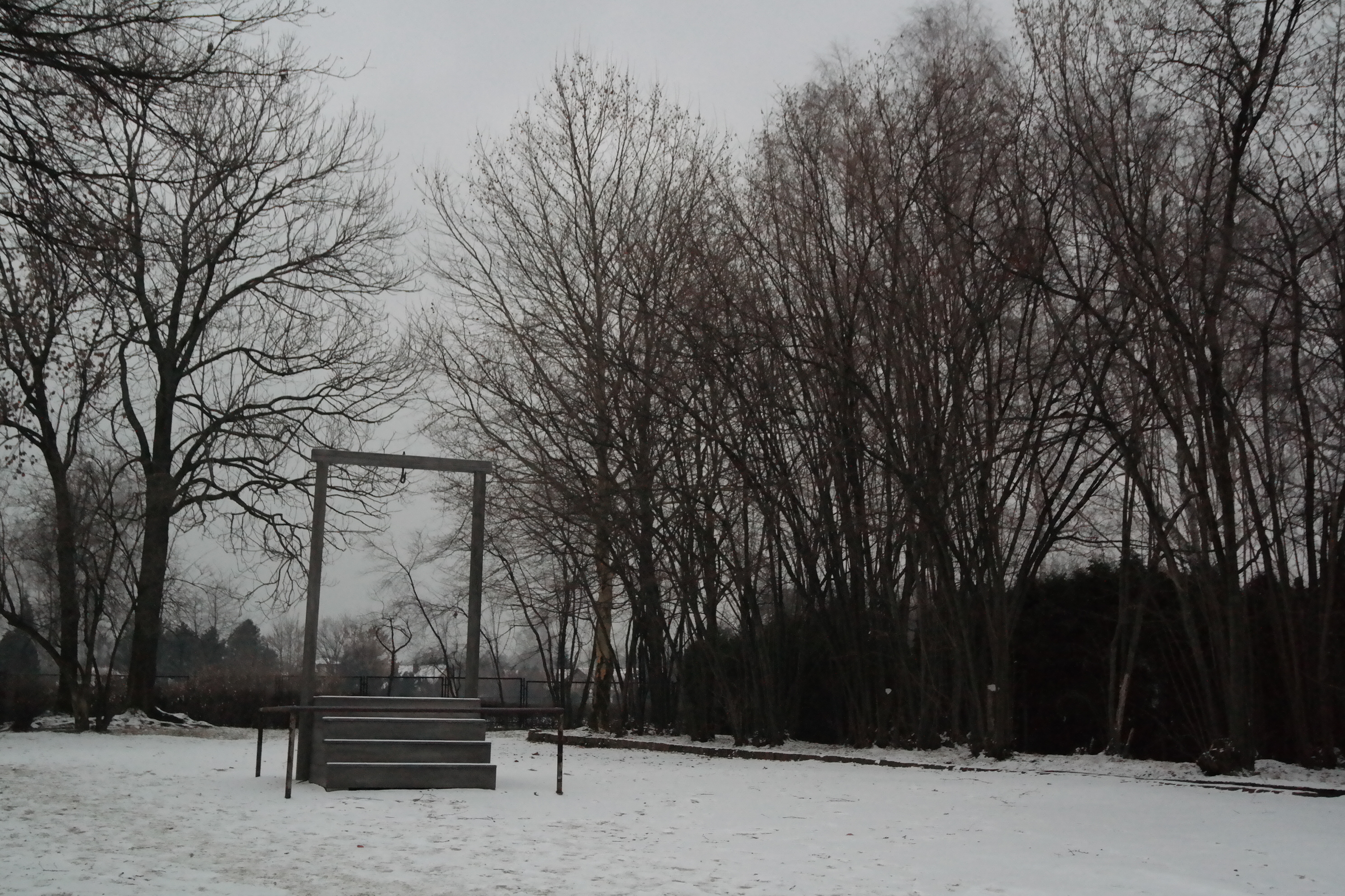Šibenice za krematoriem I v táboře Auschwitz I, kde byl 16. dubna 1947 popraven Rudolf Höss, velitel komplexu koncentračních a vyhlazovacího táborů v okolí města Osvětim. Foto Pavel Chalupa